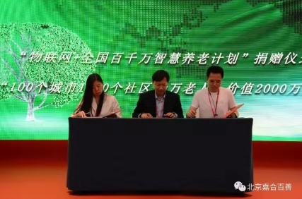 智慧健康專委會秘書長遲勝簽約"物聯(lián)網(wǎng)+全國百千萬智慧養(yǎng)老計劃"捐贈儀式