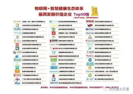 大會現(xiàn)場發(fā)布了《物聯(lián)網(wǎng)+智慧健康生態(tài)體系最具發(fā)展價值TOP50強企業(yè)排行榜》,嘉合百善公司也獲得此殊榮▼